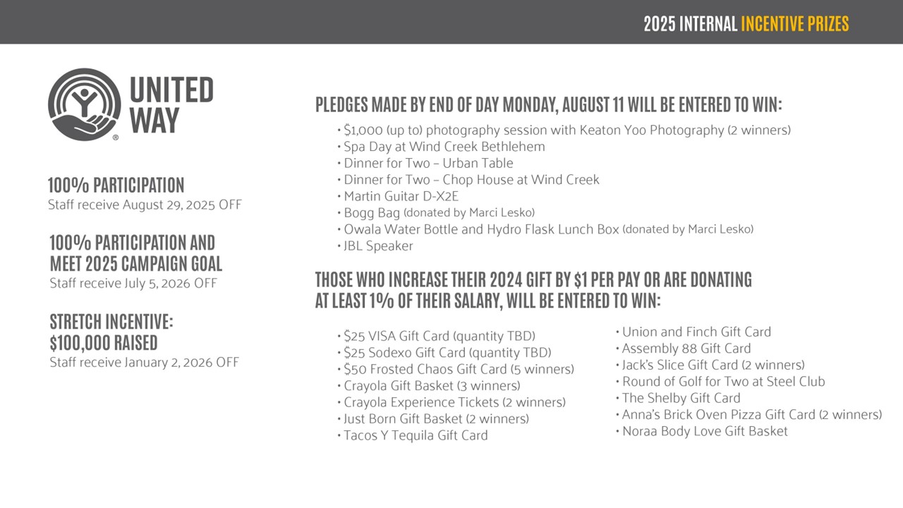 When our neighbors are supported, students are seen and older adults are valued, our community grows stronger. Because when we’re UNITED, we thrive. Hover over the amounts below to see how your gift makes real and lasting impact.